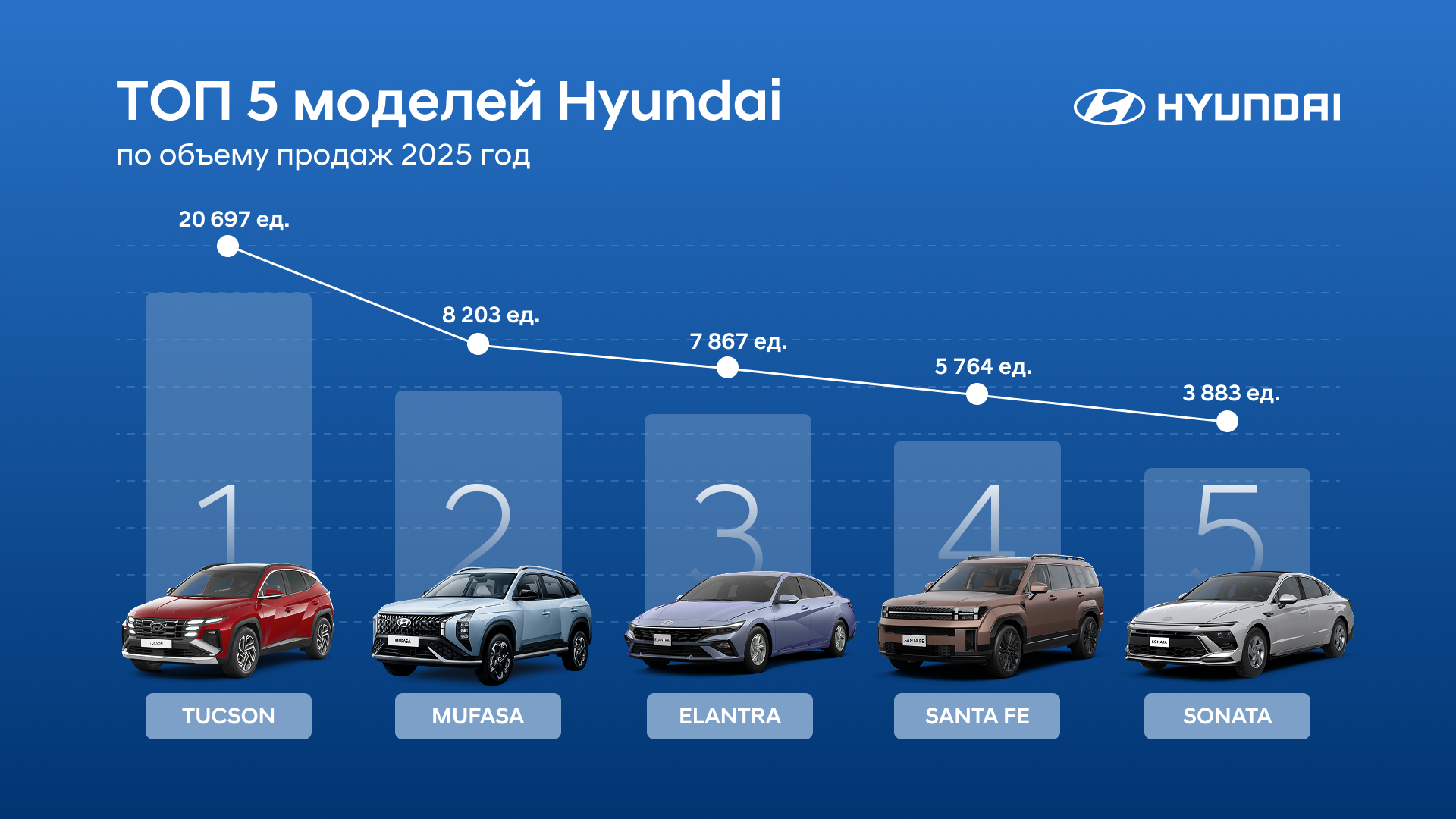 ТОП-5 моделей Hyundai по продажам в 2025 году